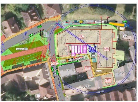 MAS BTP est autorisé à installer une grue Place du foirail à compter du 30 mars 2026 jusqu'au 30 septembre 2026
