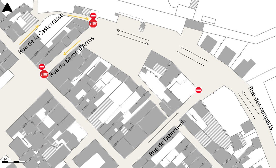 🔎 L’intégralité de l'arrêté municipal instaurant un sens unique de circulation dans les rues de l'Abreuvoir et Baron d'Arros :
